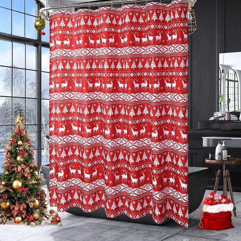 - Exquisite printing: Compared with other shower curtains, our printing effect is the best. The combination of white and Red can perfectly fit all baths. The tree and deer patterns have a Christmas atmosphere. It can also be given as a gift to friends and family.