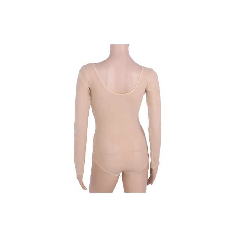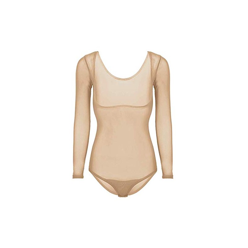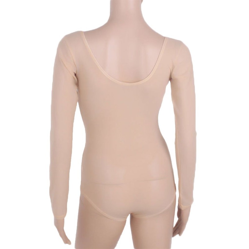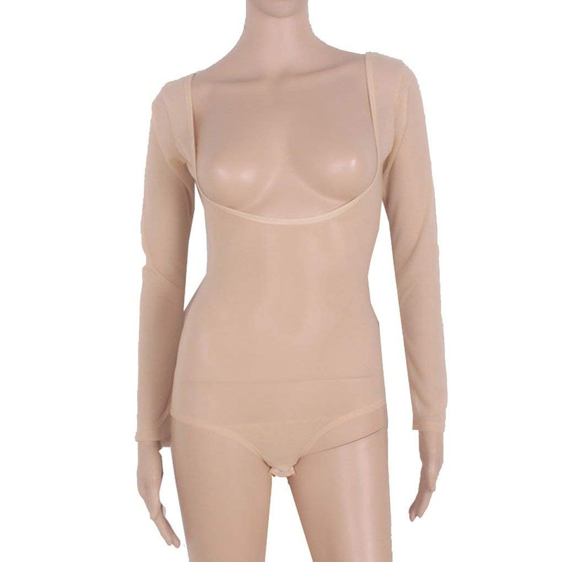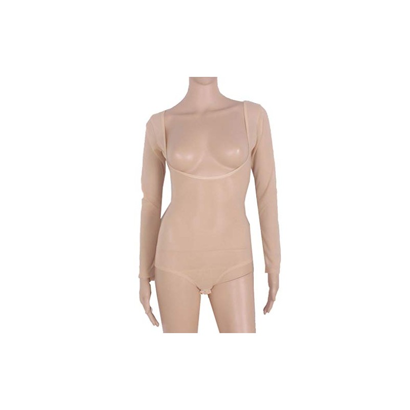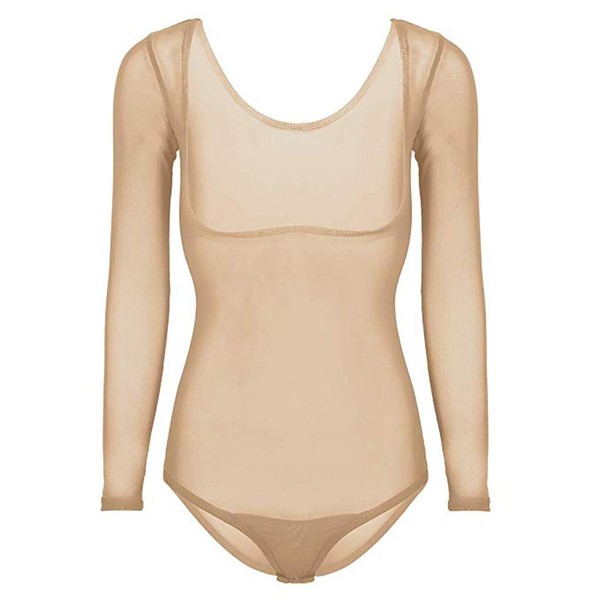 LinvMe Women's Mesh Sheer Chest Opened Belly Dance Bodysuit Nude Long Sleeve