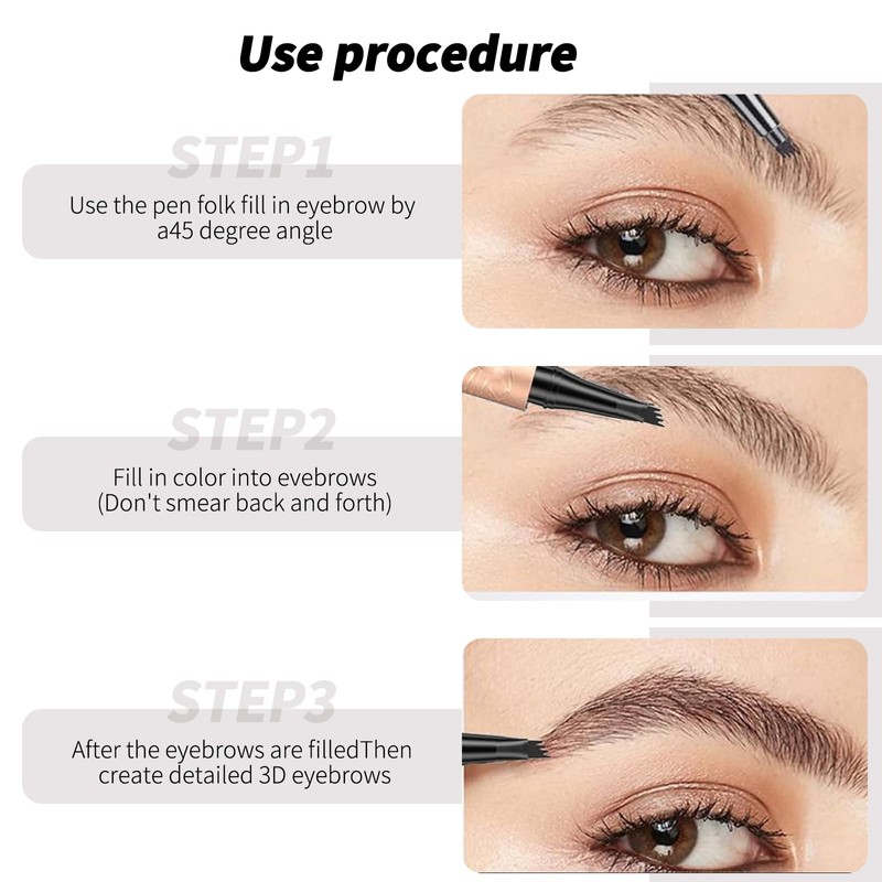 - 【Unique 4 Fork Tip Design】: Engineered with precision, this microblading eyebrow pen features four angled micro-forks to create the appearance of real hair, filling in sparse areas for thicker, fuller eyebrows effortlessly.