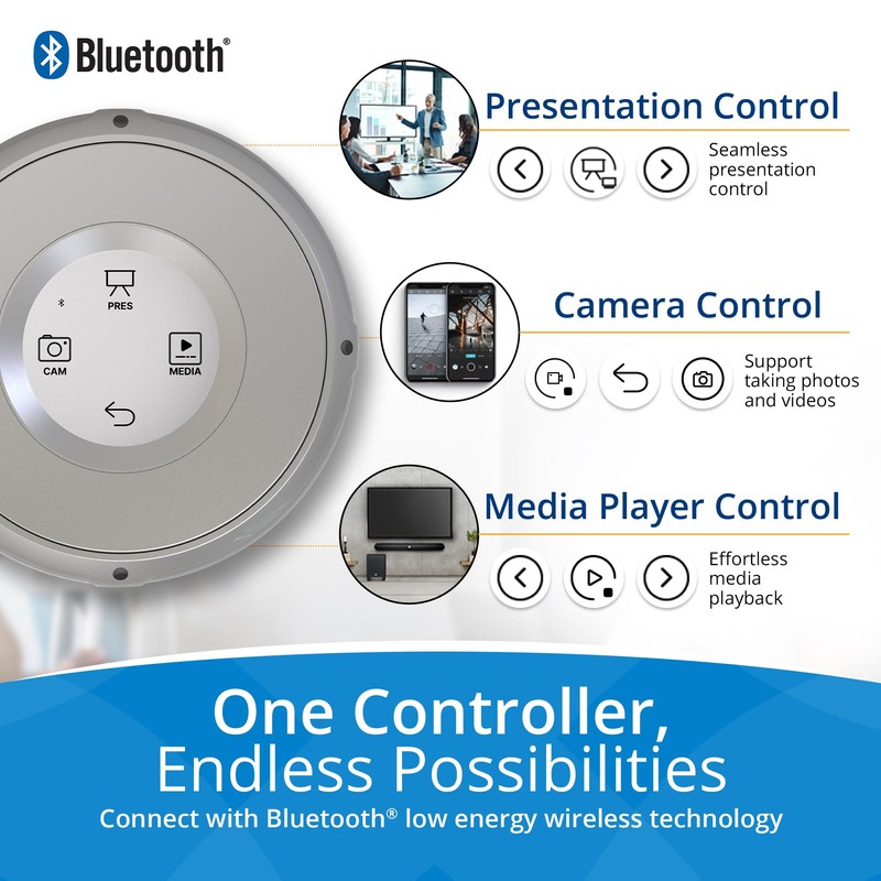 • Bluetooth Controller Mode Allows you to control cameras, media players and presentations on Android, iOS, Mac and Windows.