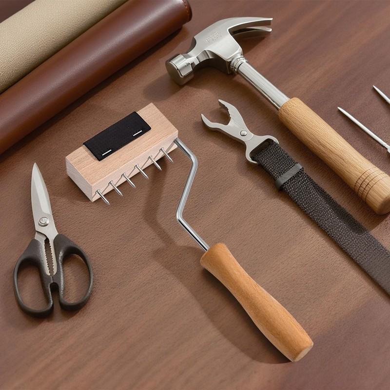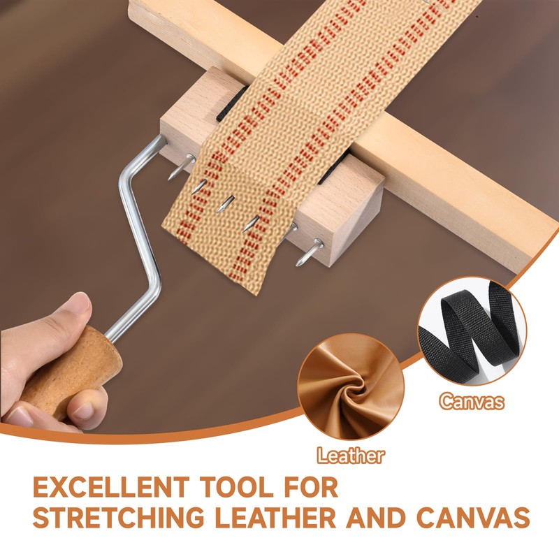- Webbing Stretcher – Wood-handle tool (27.5 cm) designed for stretching leather, canvas, and upholstery webbing, ensuring tight, even tension for furniture repair.