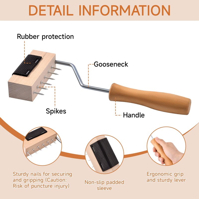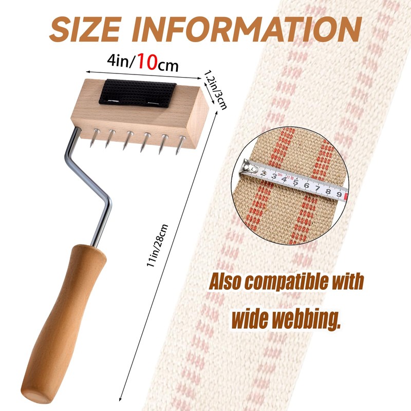 - Safety Note – Steel spikes are sharp; gloves recommended during use. Compatible with most upholstery projects.