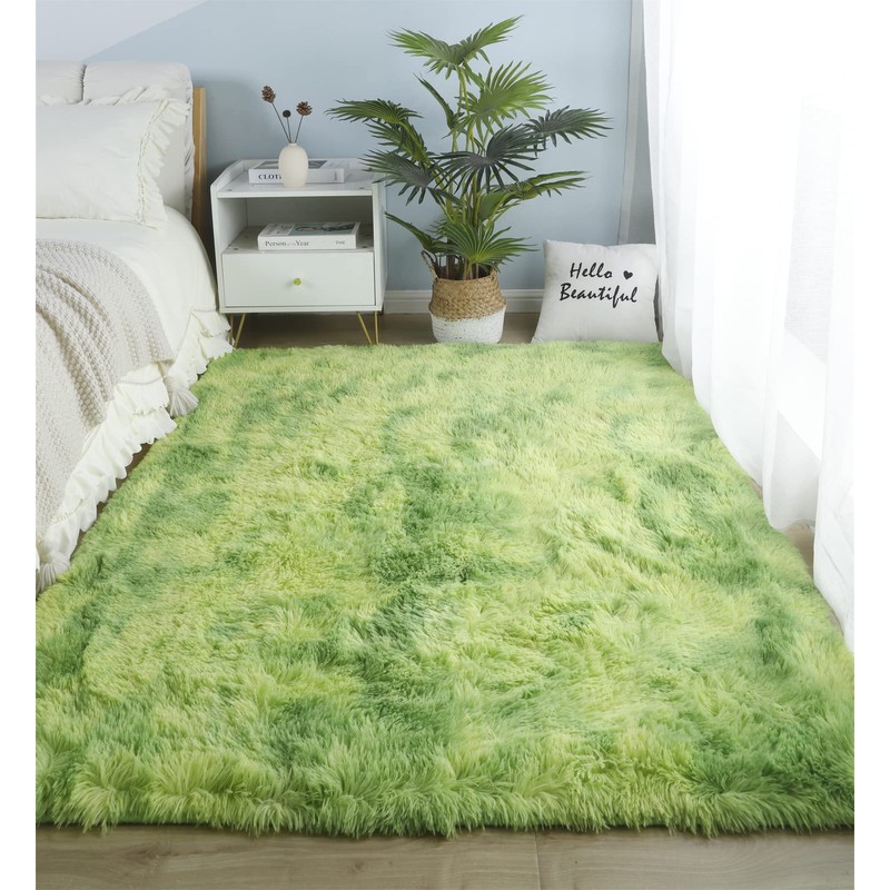 linyingdian High Pile Living Room Rug Long Pile Rugs for Living Room Fluffy Shaggy Bedroom Bed Rug Outdoor Carpet (Green, 80 x 160 cm)