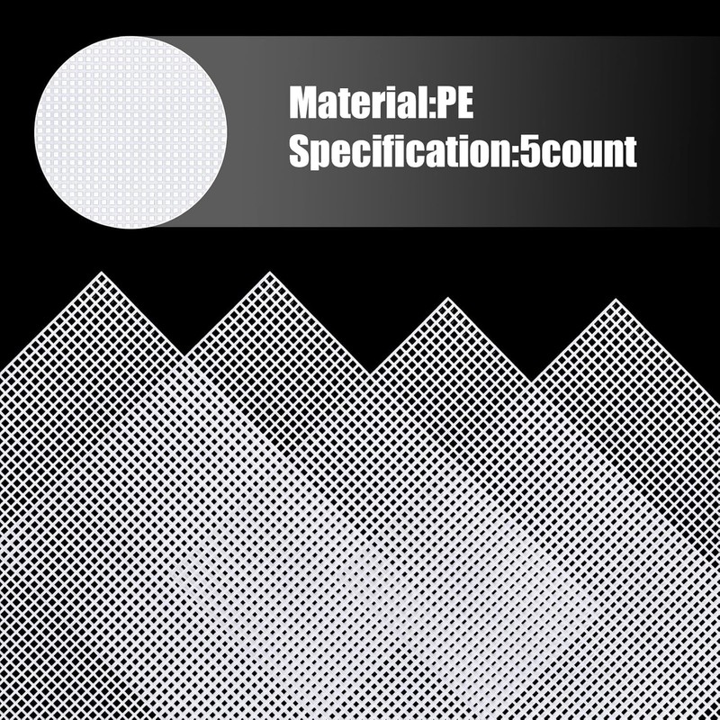 • Material: The plastic mesh screens are made of high quality plastic, sturdy and durable, not easy to deform or break. Flexible and easy to cut by scissors. The square hole eyes are clean and clear, which are easy to pass through when doing cross stitch.