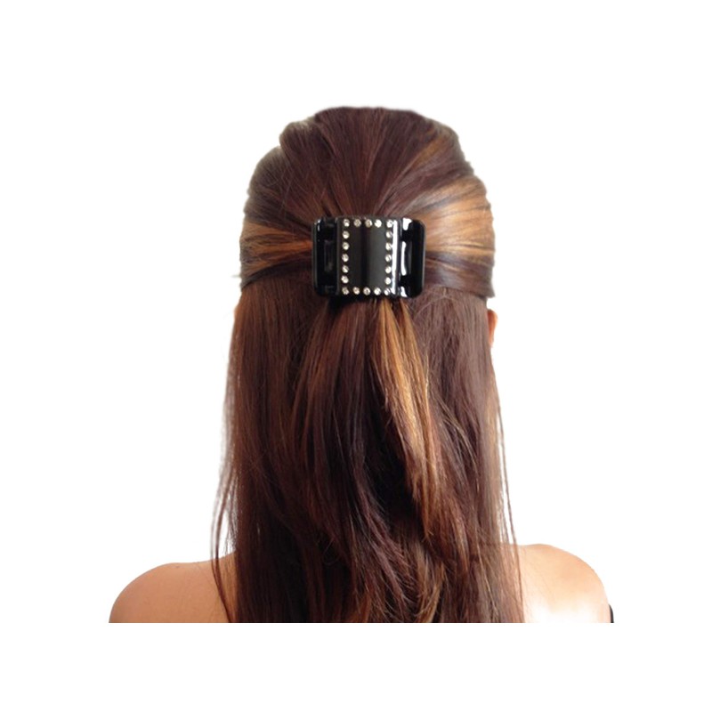- Para cabello medio a más grueso, el negro Linziclip Midi, uno acentuado con diamantes de imitación y el otro suave, son perfectos para peinar el cabello de una variedad de maneras