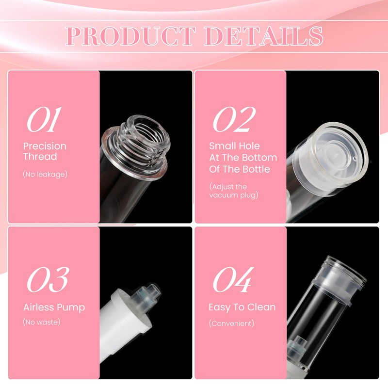 - Airless pump design: Airless pump travel refillable bottle to keep out harmful air and other impurities, no longer touch skin care products with your fingers. Travel Size Dispenser Refillable Containers are designed instead of straws, so you don't waste another drop of product.