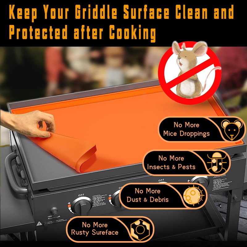 - 【Better Protection】: Silicone grill cover mat for blackstone griddle surface seal can protect the griddle from moisture and oxygen,effectively prevent rust and oxidation, keeping your griddle looking beautiful and healthy for a long time. Extending its lifespan of the griddle.