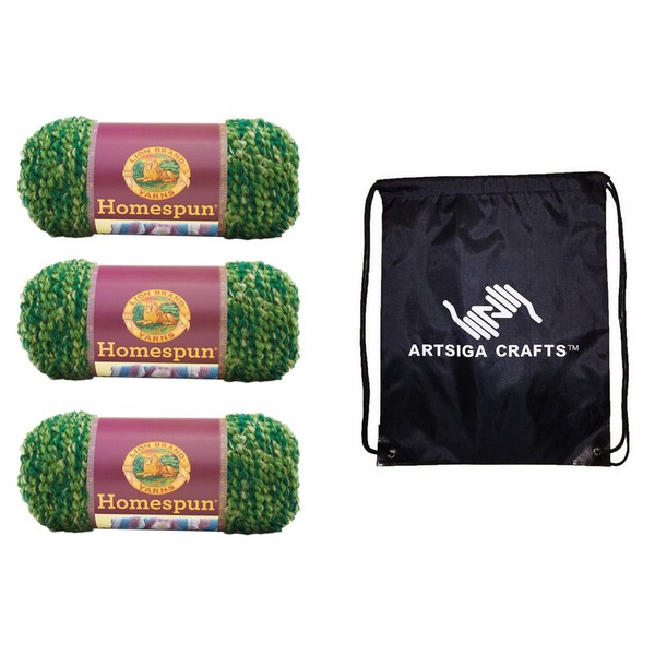 - Includes Lion Brand Yarn Homespun Knitting Yarn Forest 3-Skein Factory Pack (Same Dye Lot) 790-604 with 1 Craft Project Bag