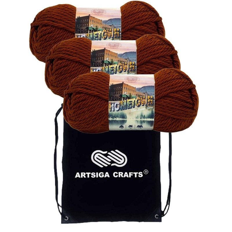 - Includes 3 skeins of Lion Brand Hometown Yarn USA - Stowe Sugar Maple 135-135 S Bulky yarn for knitting and crocheting and a 13x16 Craft Project Bag. Its squishy and thick texture channels a sense of comforting community.