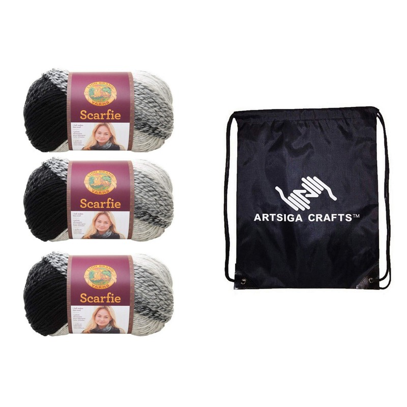 - Bundle includes Lion Brand Yarn Scarfie Knitting Yarn Cream/Black 3-Skein Factory Pack (Same Dye Lot) 826-201 Bundle with 1 Artsiga Crafts Project Bag