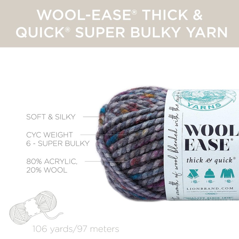 • Wool-Ease Thick and Quick is the super bulky member of the Wool-Ease family; Perfect for extra warm sweaters, jackets, and hats