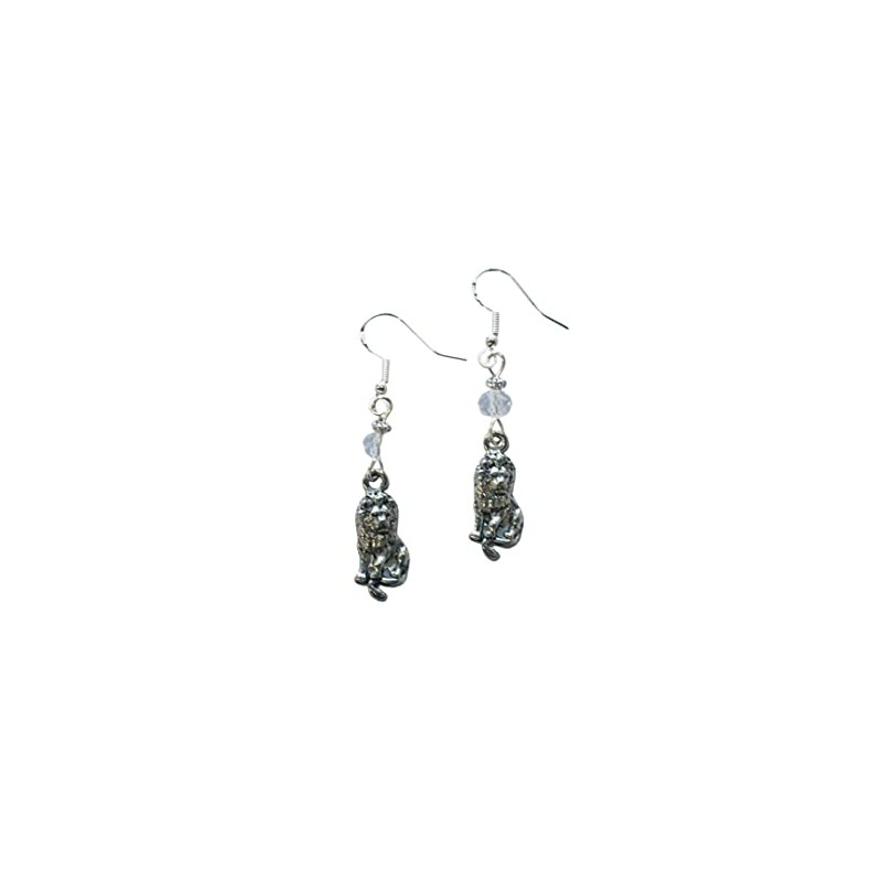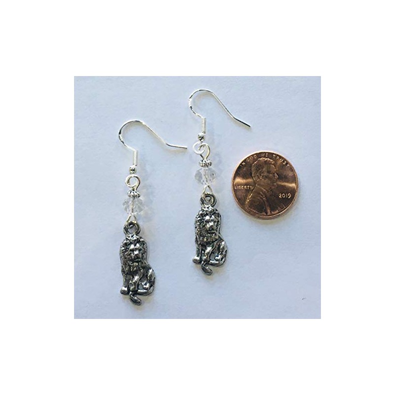 Lion Charm Earrings, Alpha Delta Pi ADPi Phi Mu PM Lion mascot earrings, with a clear faceted crystal accent bead, on sterling silver earwires - the lion charms are made of pewter - great earrings! They delicately dangle from clear faceted crystal accent beads. Comes on sterling silver earwires for happy ears. Handmade in the USA. A great pair of earrings for the Alpha Delta Pi and Phi Mu sorority! Handmade in the USA.