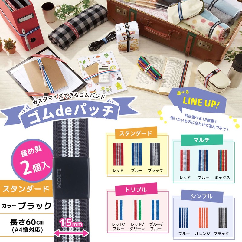 Lion Office Equipment Rubber Band Rubber De Patch 0.6 inch (15 mm) Width GP-150BK Black