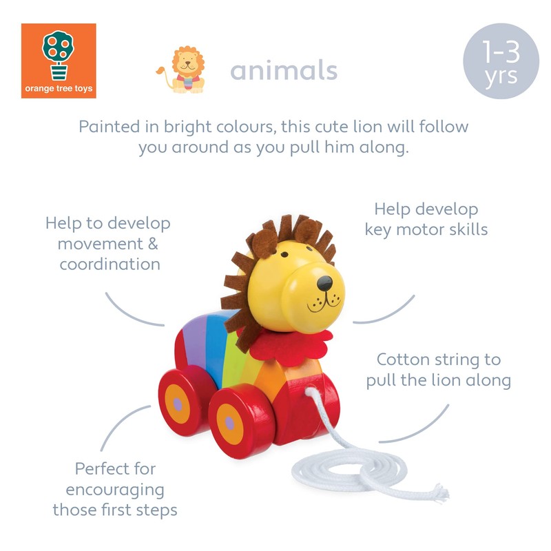 - SAFE FOR PLAY: Wooden lion toy figures are painted in bright colours, with non toxic paint and includes a soft cotton string to make it easy to pull behind as your child walks. All Orange Tree toys are tested both in-house during production and independently to meet European safety standards. Suitable from age 12 months, ideal toys for 1 year old boys and girls