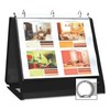 Sturdy ring binder easel sets up easily for presentations. Easel features a full-sheet front cover pocket, space for a label holder, exposed rivets and a business card holder inside the front cover. Steel round rings are spine-mounted. Included 10 refill pockets have a black matte finished insert sheet. Three-ring binder is made of polypropylene.