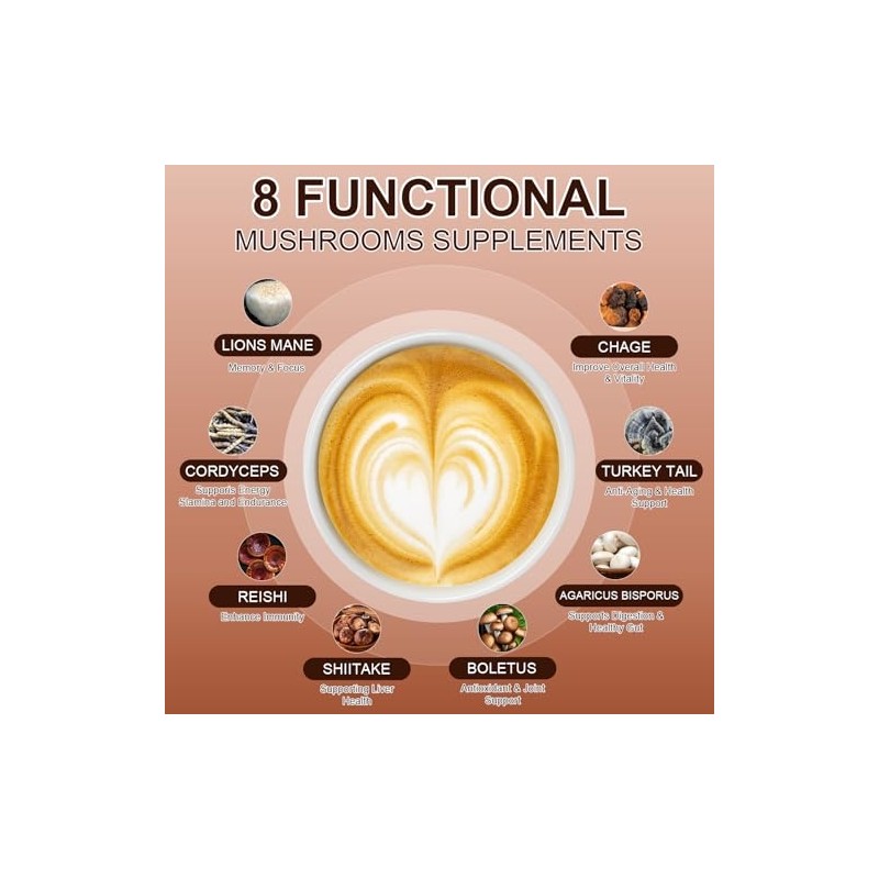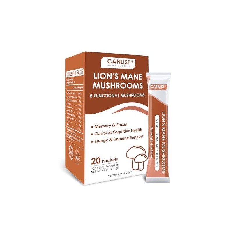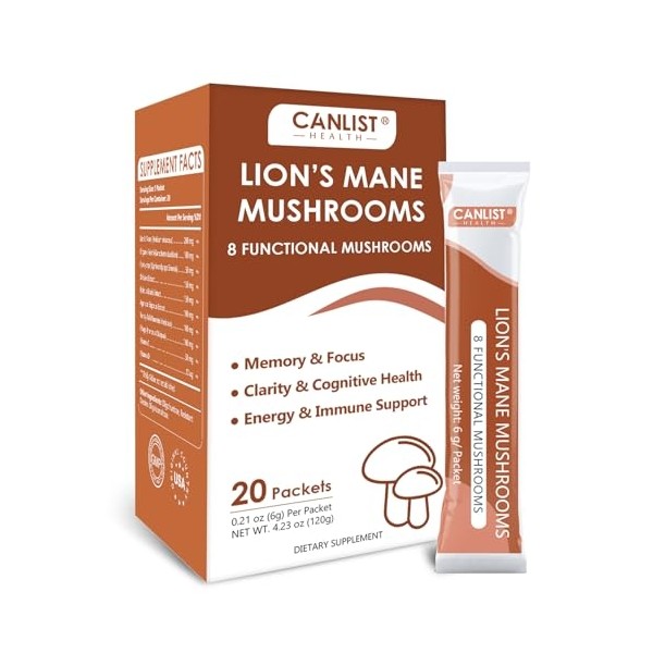 Lion's Mane Mushroom Powder with Lions Mane, Cordyceps, Chaga, Reishi, Shiitake, Boletus, Agaricus Bisporus, Turkey Tail for Better Energy, Cognitive Focus & Immune Support, 20 Packets