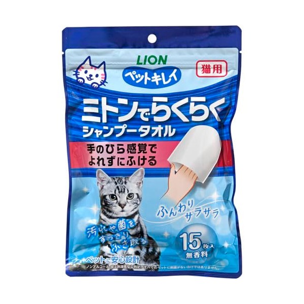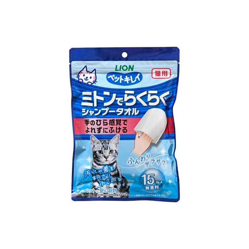 Lion Shoji Mitten Easy Shampoo Towel for Cats, 15 Pieces