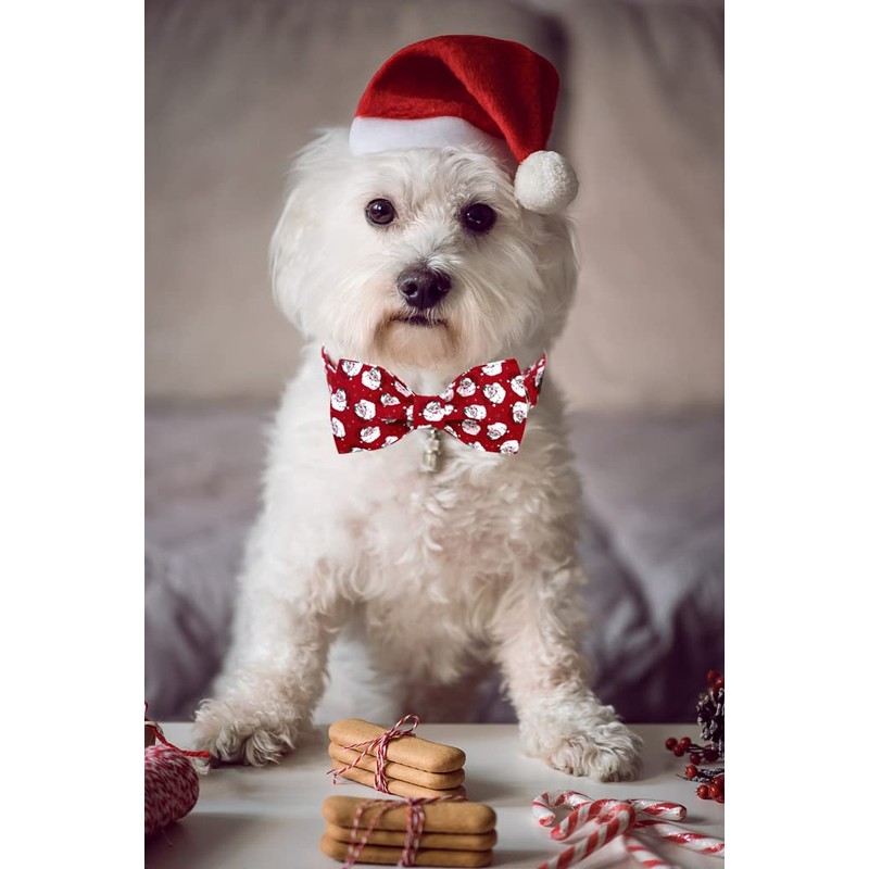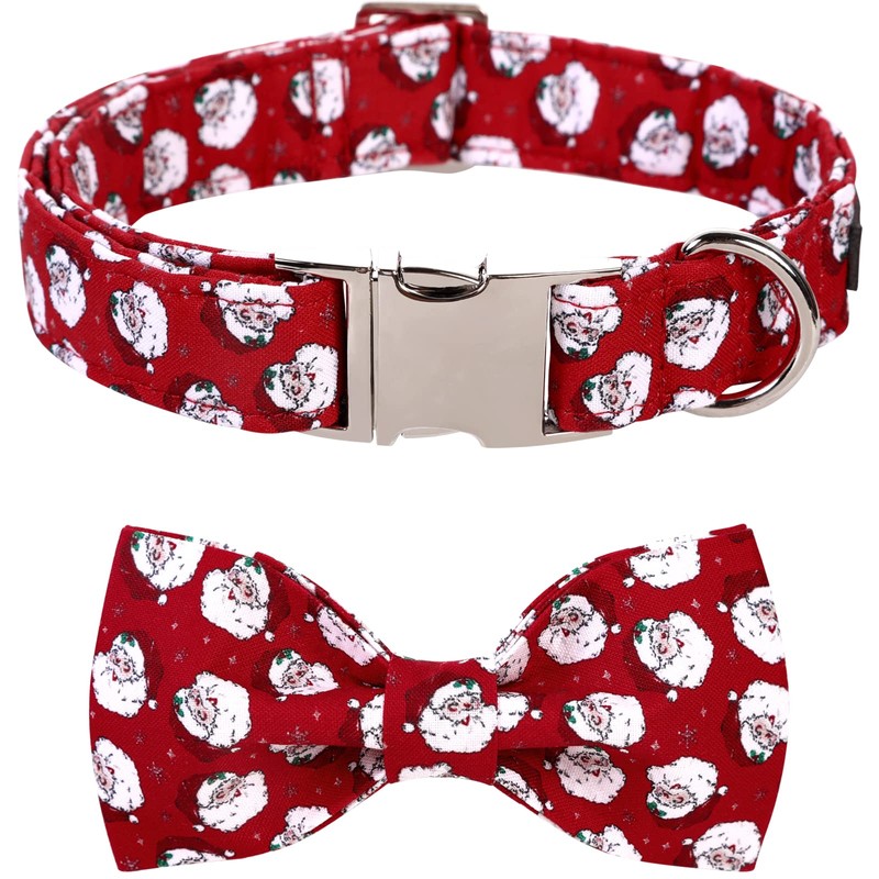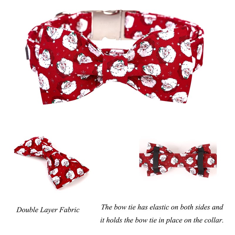 Lionet Paws Christmas Dog Collar with Bow Tie, Durable Comfortable Cotton Collar with Metal Click Closure for Dogs and Cats, Neck 25-40 cm