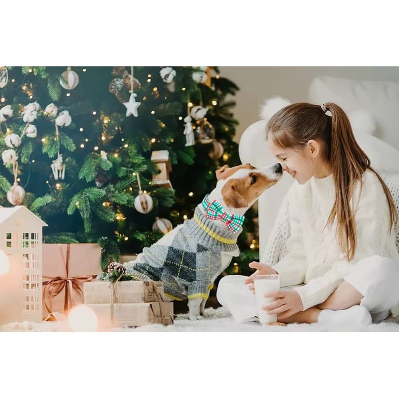 Lionet Paws Christmas Dog Collar with Bowtie, Dog Bowtie Collar with Metal Buckle for Dogs, Adjustable Comfortable Dog Collar Girl Boy Gift, L, Neck 16-24 in