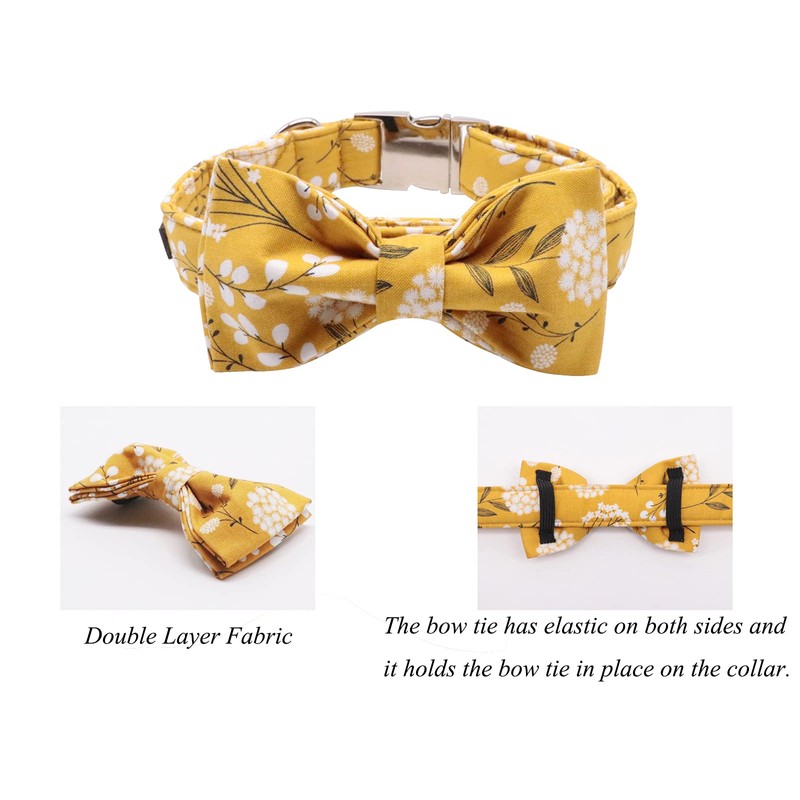 - [Feature]:The collars are beautiful and unique in design and colour. They are handmade products. The collar and the bowtie can be separate. Each bowtie is attached to collar by using two elastic straps. The bow tie can match other dog collars. And we have dog leads which are the same style of these collars. You can find them from Lionet Paws.