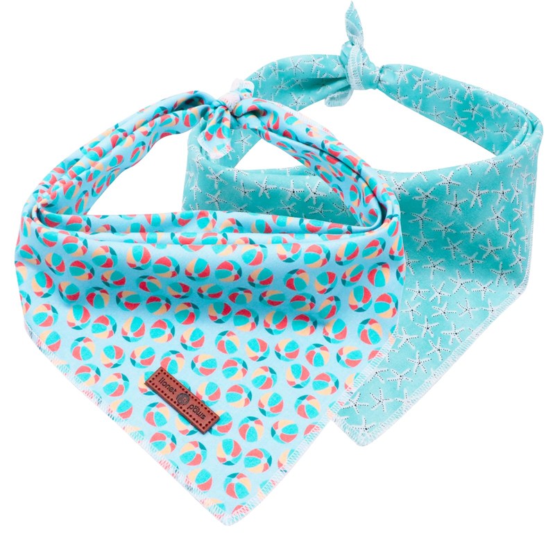 Lionet Paws Summer Dog Bandanas 2 Pack, Blue Washable Dog Triangle Bibs Scarf Dogs Kerchief,Adjustable Triangle Holiday Scarves for Medium Large Extra Large Dogs Pets