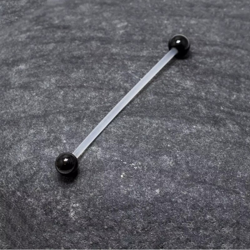 LionGothic Industrial Barbell Clear Retainer Bioflex Ear Bar Titanium Ball 14G 38mm 1.5"