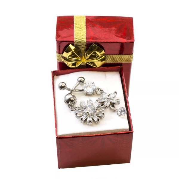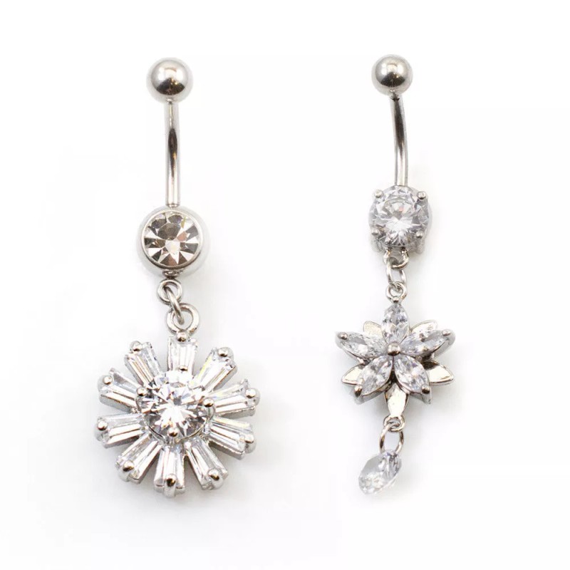 LionGothic Navel Ring Package of two Flower and Snowflakes design with multiple Clear Cz St