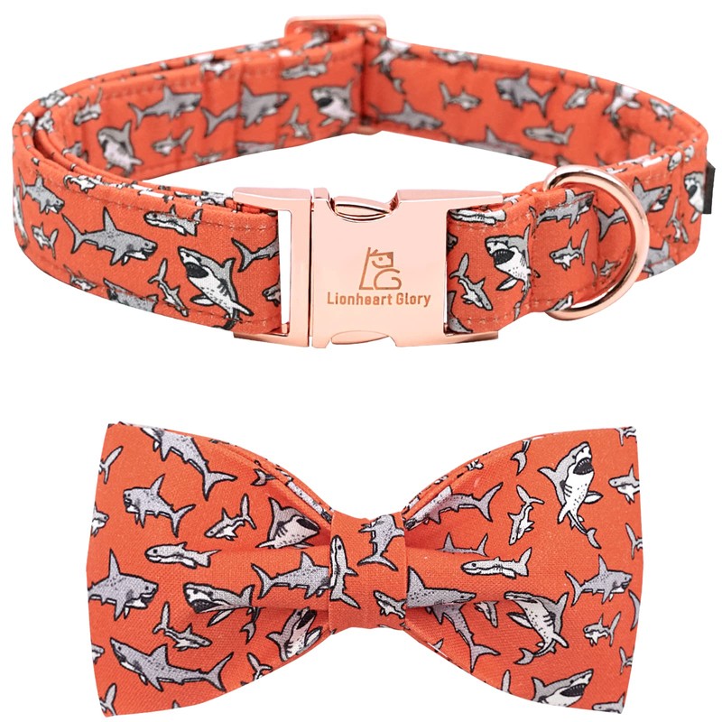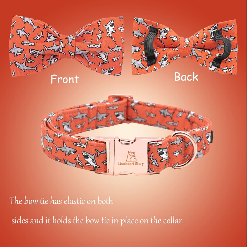 Lionheart glory Dog Bow Collar Shark Print Bow Dog Collar Girl or Boy Dog Bow tie Collar Pet Gift Adjustable Dog Collar for Large Dog