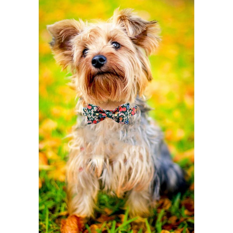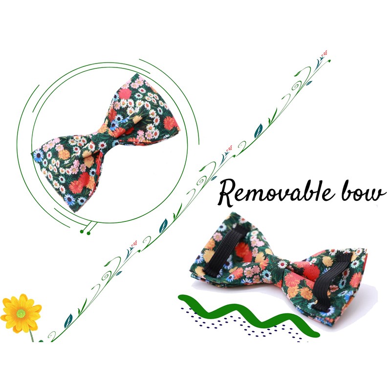 Lionheart glory Floral Print Dog Collar Adjustable Soft Dog Collar with Bowtie, Girl Pet Collars for X-Small Small Medium Large Dogs