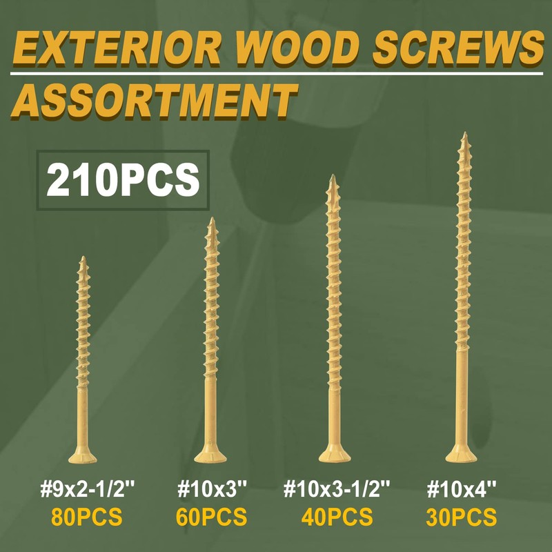 • 【Package】: Deck Screws Assortment Kits 210PCS, T-25 Star Drive Bit Included.