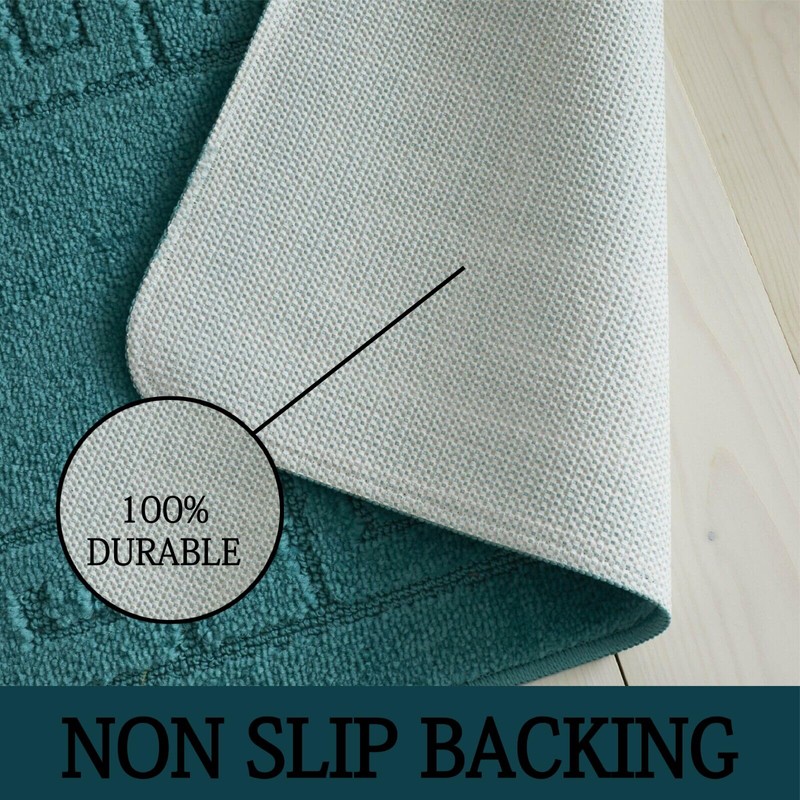 - HIGHLY ABSORBENT MATERIAL: Absorbent, quick dry polyester is the perfect material to keep moisture from your bathroom floor as you dry off after a bath or shower.