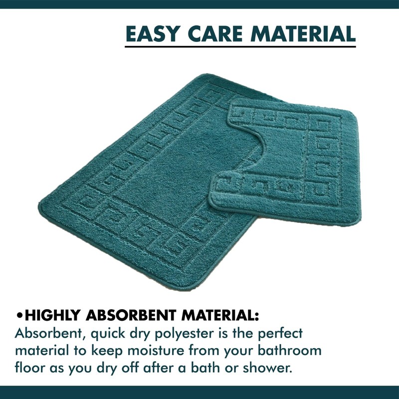 - MACHINE WASHABLE BATH MAT SET: This easy care Greek bath set is machine washable for greater convenience when cleaning your furnishing items.