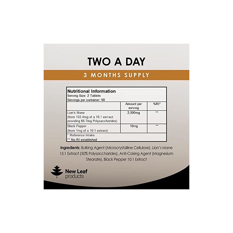 • LIONS MANE SUPPLEMENT – Commonly used a food supplement and manufactured in different formats such as capsules powders and tablets – Our tablets are very small and easy to swallow and each bottle contains 180 tablets which will last up to 3 months when taking two tablets per serving.