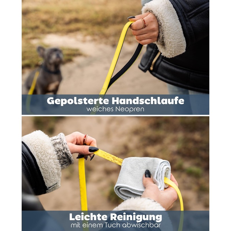 - 𝗣𝗥𝗔𝗞𝗧𝗜𝗦𝗖𝗛+𝗣𝗙𝗟𝗘𝗚𝗘𝗟𝗘𝗜𝗖𝗛𝗧. Die wasserabweisende Oberfläche macht die Leine pflegeleicht – einfach mit einem feuchten Tuch abwischen. Die auffälligen Farben sorgen für optimale Sichtbarkeit auf jedem Untergrund, egal ob im Wald, auf Wiesen oder auf der Straße. Sie eignet sich perfekt für das Rückruftraining, die Erziehung oder den kontrollierten Freilauf.