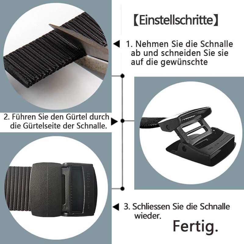 - FULLY ADJUSTABLE FOR YOUR SIZE You can adjust your belt exactly to the perfect fit. Automatic buckle, no holes in the belt. If the band is too long for you, you can cut the band length to your own size. This nylon belt is suitable for trousers under 46 inches such as 32 - 46 inches.