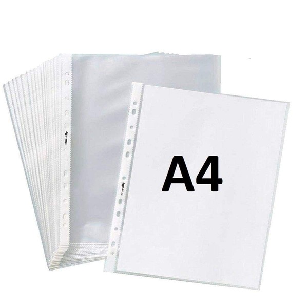 Liora Micron Transparent Document Sleeves, Leaf Sheet Clear Certificates/Waterproof Sheet Protectors 11 Holes Punched Ring Files Folder (A4 Size) (Pack of 100) (100)