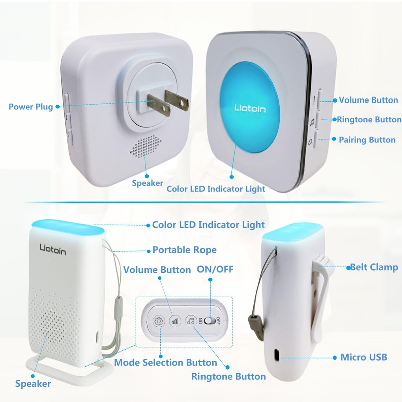 - MULTIFUNCTIONAL CALL BELL: The portable caregiver pager is equipped with a belt clip and can be carried with you. It includes five adjustable reminder modes of vibrating flash, ringing tones to choose from, and four adjustable volume levels (from db to db). The plug-in caregiver pager is plug and play, with ringtones for you to choose from, adjustable volume levels (from db to db), and flash adjustable reminder modes.