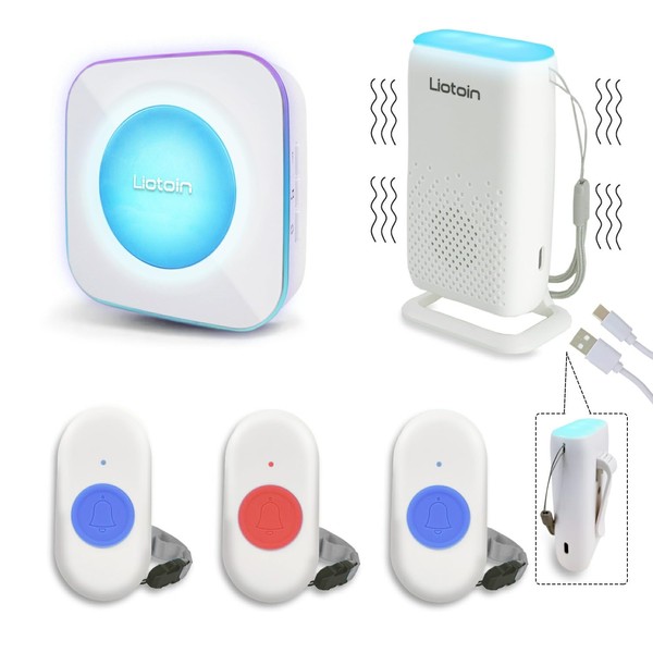 LIOTOIN Wireless Caregiver Pager Call Button Alert Button Call Bell for Elderly Patients at Home Nurse Alert System 3 Waterproof Transmitters 1 Portable Receiver 1 plugin Receiver………