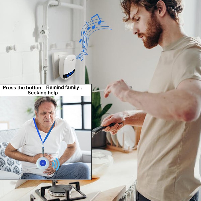 - [Waterproof and Warranty]:Transmitter/Push Call Button is waterproof. Acceptable for meal/soup Splash. And allow to be installed in the washing room.3 months money back promise and 1 year quality Service. Any quality problem of the item,Please contact our customer service team directly.