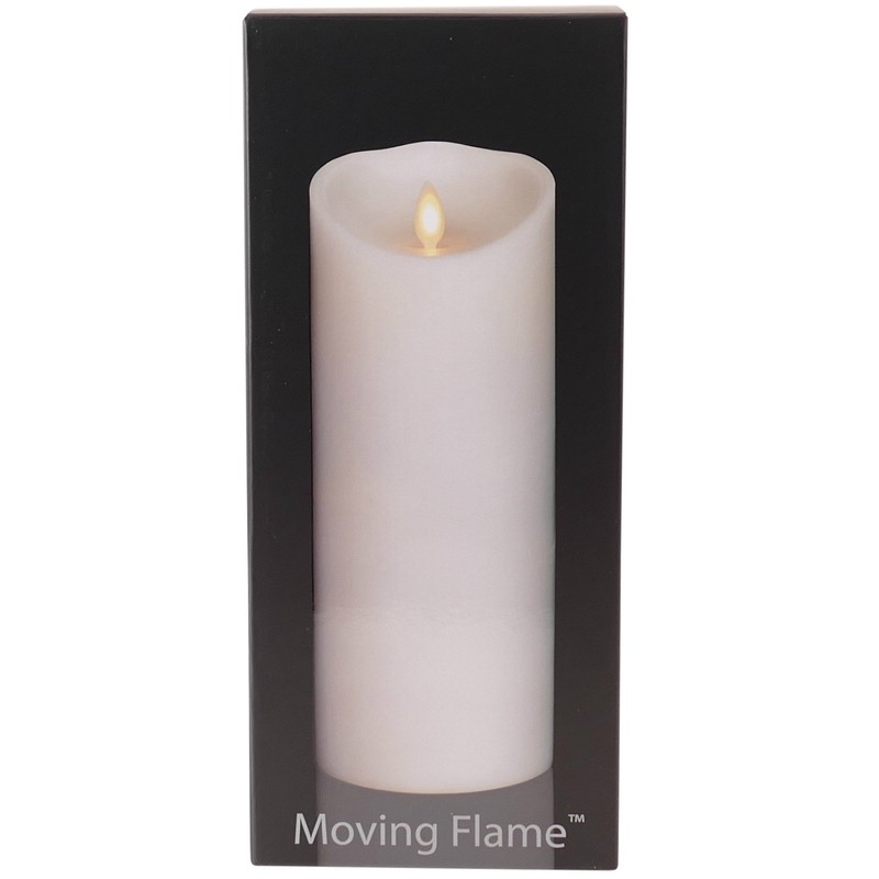 - Liown moving flame, ivory LED flameless pillar candles with timer lights up your space with a flickering, glowing effect. Battery powered using 2 D batteries.