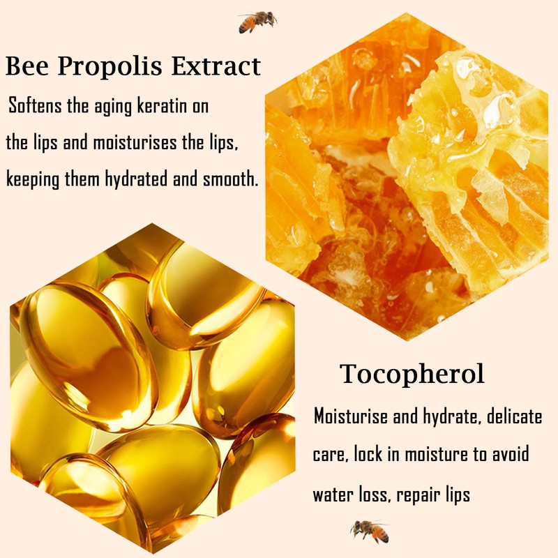 - 【Moisturising Lip Mask】This lip mask is enriched with natural honey extract, rich in propolis extract, tocopherol and other moisturising and repairing ingredients, which effectively locks in the moisture of the lip skin to achieve moisturising and repairing lips.