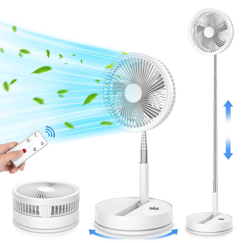 - 【9" Portable Fan with Remote】 Travel Fan remote control supports 1h to 4h timer function. Standing fan utilizes unique telescopic design, which is lightweight and compact. 4.1"/41.3" in height when folded/stretched. Foldable Fan can be used as table/pedestal/floor fan to easily meet your different needs.