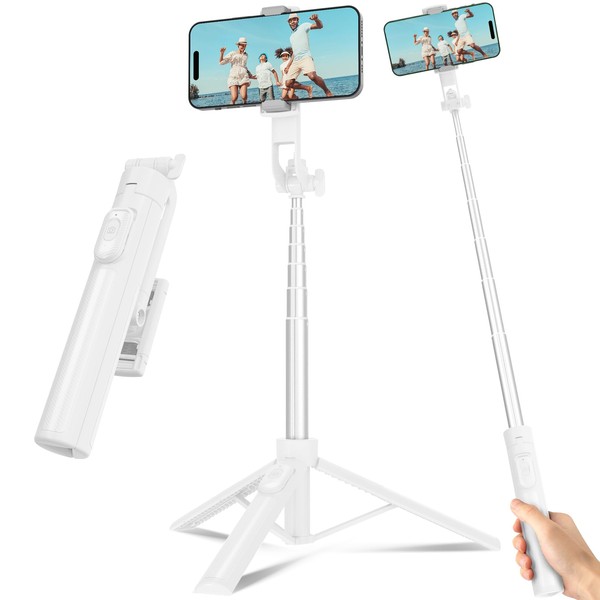 Liphisy Selfie Stick Travel Tripod for Cell Phone with Remote Control and Phone Holder, Extendable Selfie Stick for iPhone, iPhone Tripod for Video Recording, 50 Inch, White