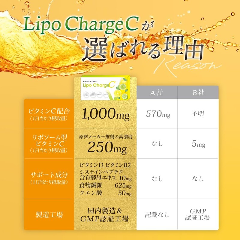 - 2.5種類のビタミンCを配合。1袋でビタミンC1000mgをチャージ! リポソーム型ビタミンC・持続型ビタミンC・ピュアビタミンC・安定型ビタミンC・ビタミンC誘導体