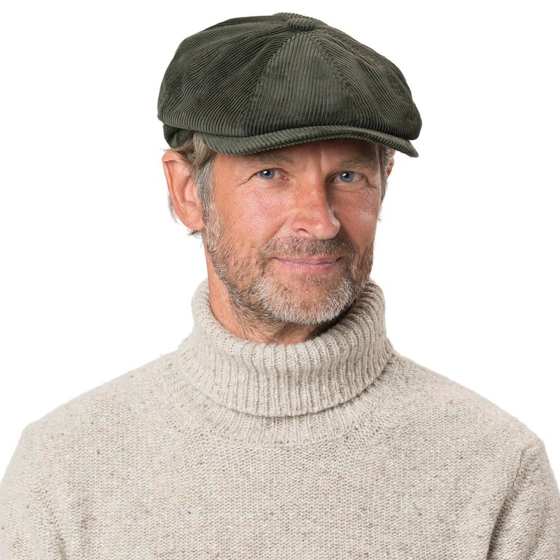 Lipodo 8 Panel Cord Flat Cap Men's – Flat Cap Made in Italy – Plain Peaked Ca...
