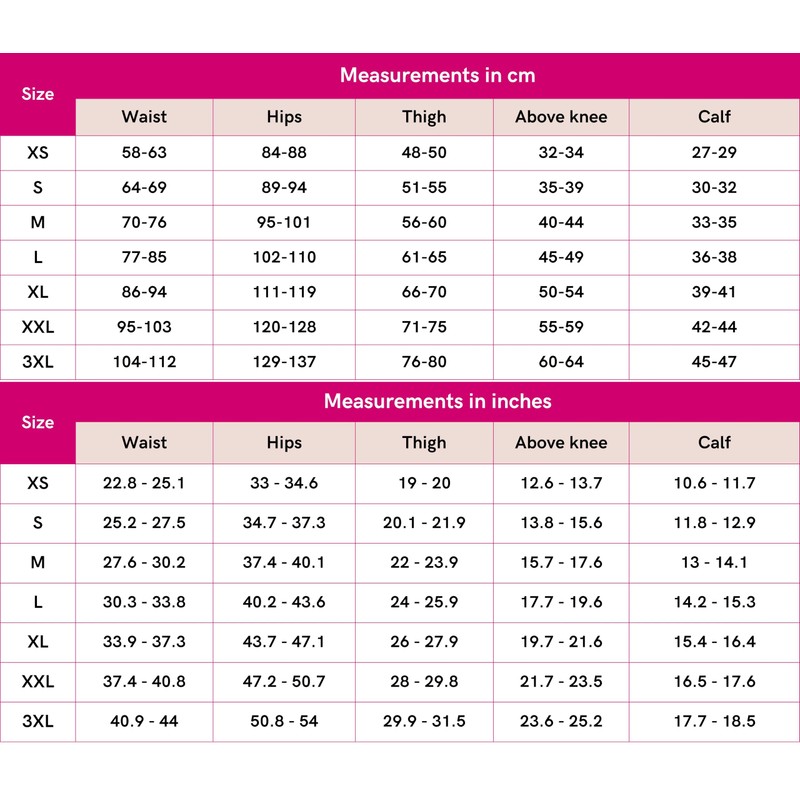Post-operative compression garments help to keep muscles in place after the procedure and eliminate swelling caused by possible accumulation of fluid. The right pressure and support is essential, so when looking for the correct garment, be sure to look out for all factors; the fit, comfort, shape, pressure and sizing chart.