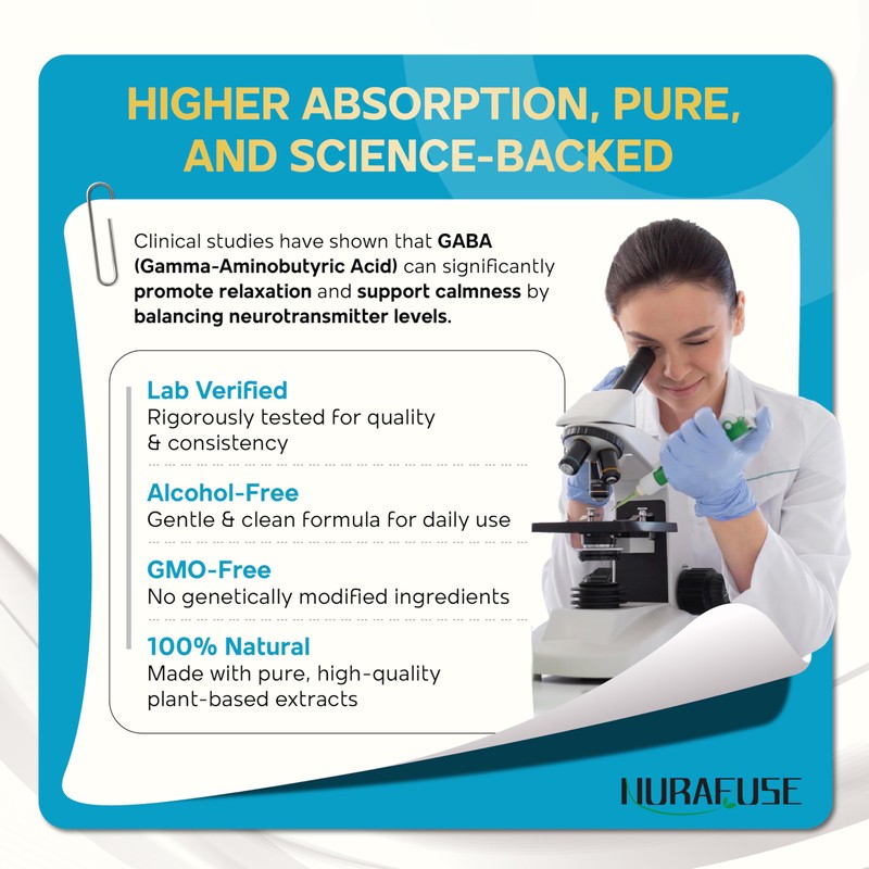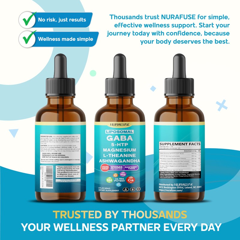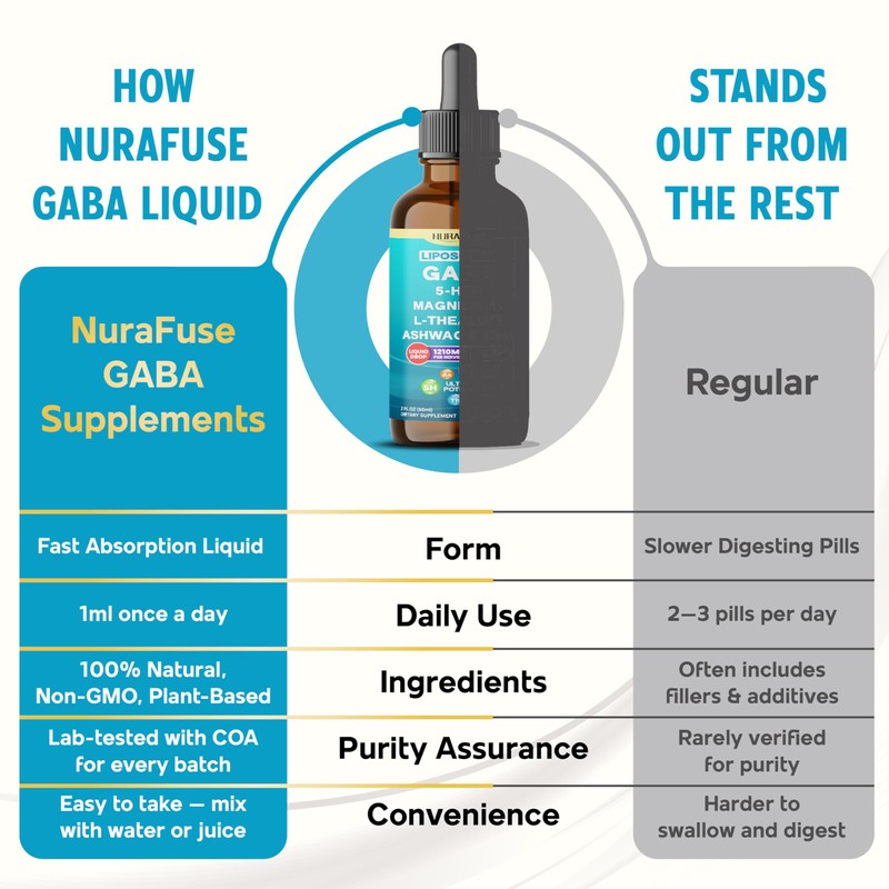 - High-Potency Liposomal Gaba Formula: Packed with a powerful 1210 mg per serving, NuraFuse liquid blend helps calm the mind, balanced mood throughout the day. Perfect for those looking to feel more relaxed, focused, and emotionally balanced throughout the day.