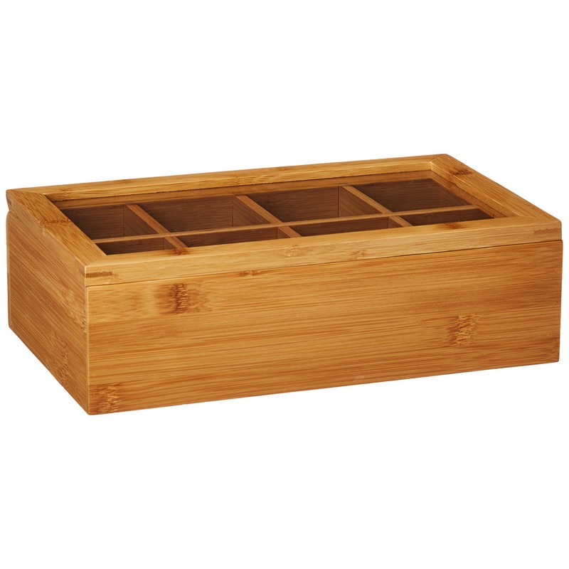 Lipper International Bamboo Wood Tea Box with Clear Lid, 8 Compartments, 12-1/2" x 7-1/2" x 3-5/8"
