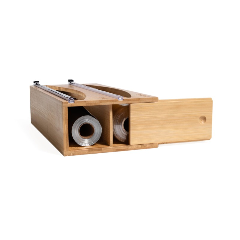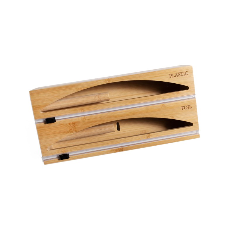 - Dual dispenser design: The bamboo 2-in-1 wrap dispenser is designed to accommodate two value-sized rolls of up to 750 square feet each, allowing you to store and access plastic wrap, aluminum foil, and wax paper conveniently in one unit - Not for rolls that are wider than 12"