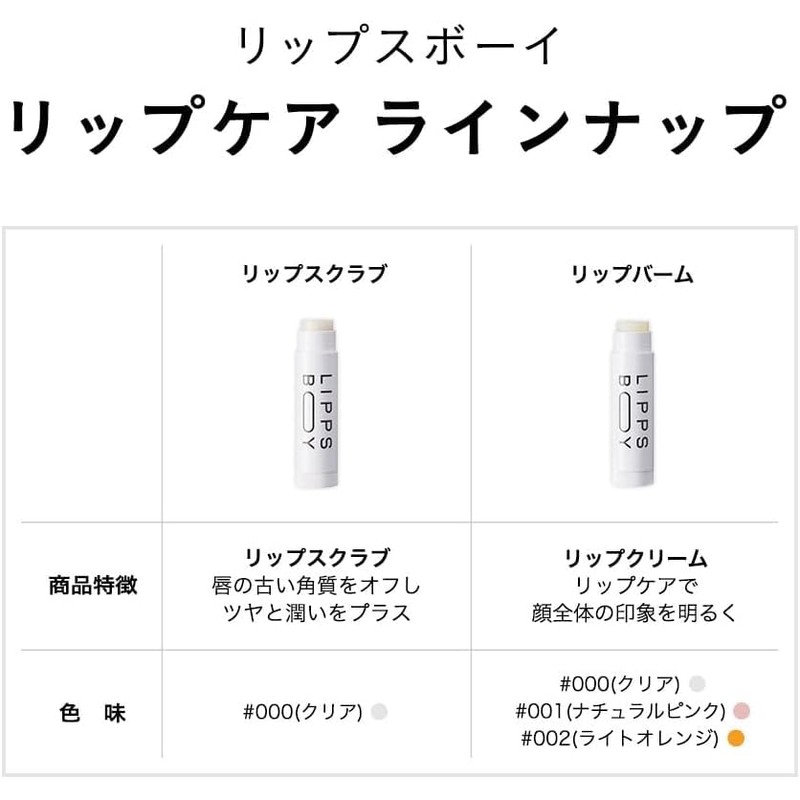 Lips Boy Lip Balm (Clear) 4g & Lip Scrub 4g Men's Makeup Cosmetics Cosmetics Transparent Colorless Natural Moisturizing Lip Care Stick